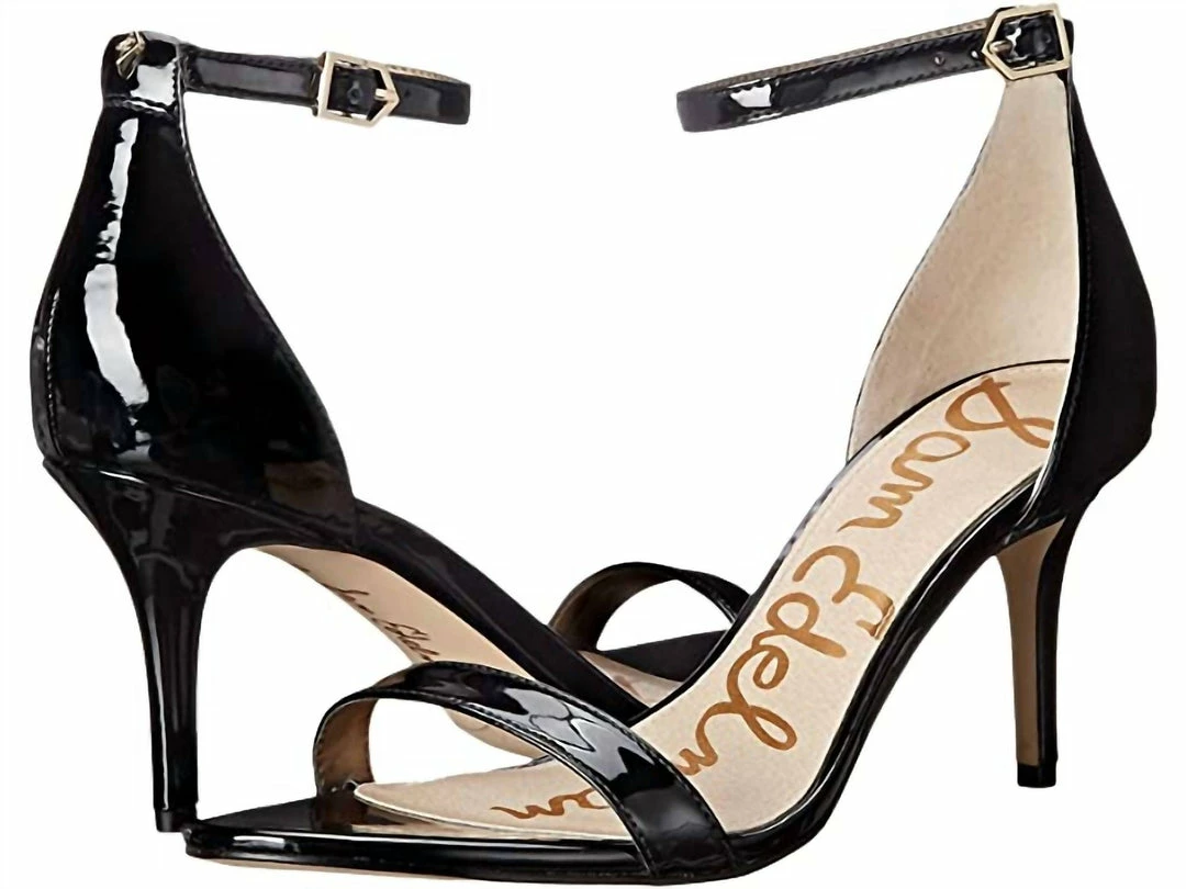 Available in premium suede, leather and man-made uppers.Halo strap with adjustable buckle closure.Round, open-toe silhouette.Single strap at vamp.Leather lining and insole.Lightly padded footbed.Wrapped stem heel.Man-made sole.Measurements – Heel Height – 3 in