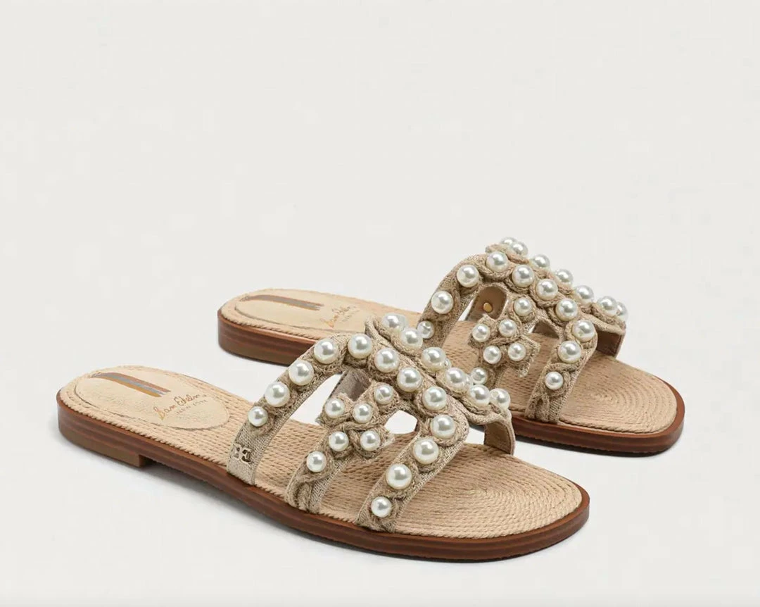 The Bay is a fan favorite year after year and with good reason. Upgraded with a woven raffia sole and pearl embellishments, this sandal will remain iconic.
