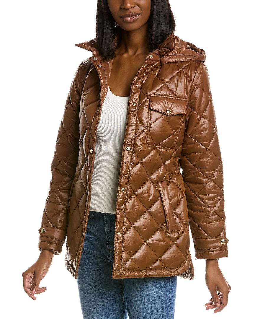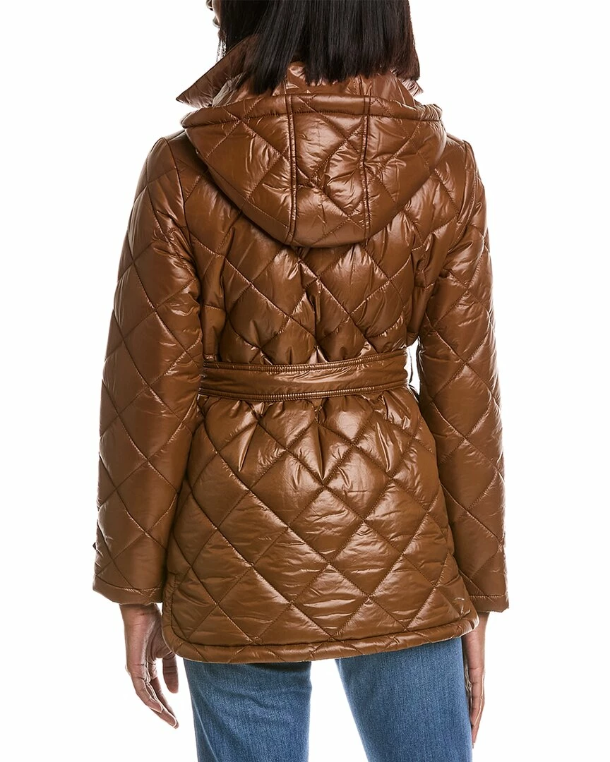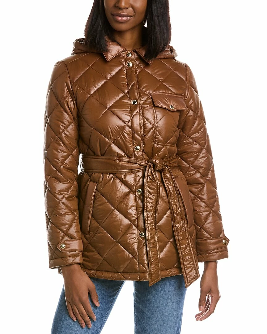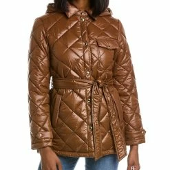 - Diamond Quilted Belted Jacket In Maple Sugar With Quilted Design, Detachable Hood, Left Chest Pocket, Two Front Pockets, Strap Detail At Cuffs And Self-Tie Belt At Waist