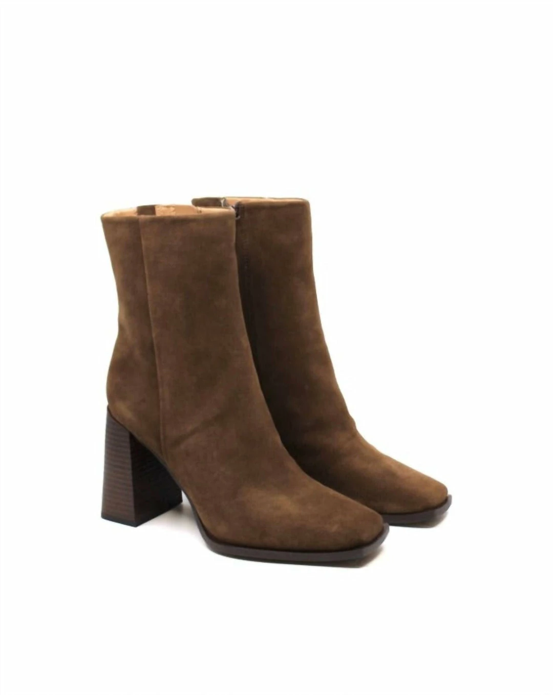 The Sam Edelman Ivette in Olive Taupe Suede pack a punch with their bold extending heel. But they keep things simple with a sleek upper and squared toe.Closure – ZipperToe – SquareHeel Height – 3.5 inchesBoot Shaft – 6.2 inchesCalf Circumference – 9.8 inchesInsole – Synthetic