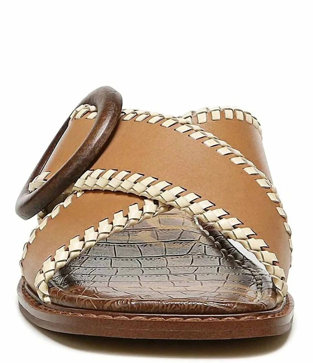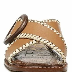 Sam Edelman Leather Cross Slide Sandal in Light Cuoio Brown Leather for women