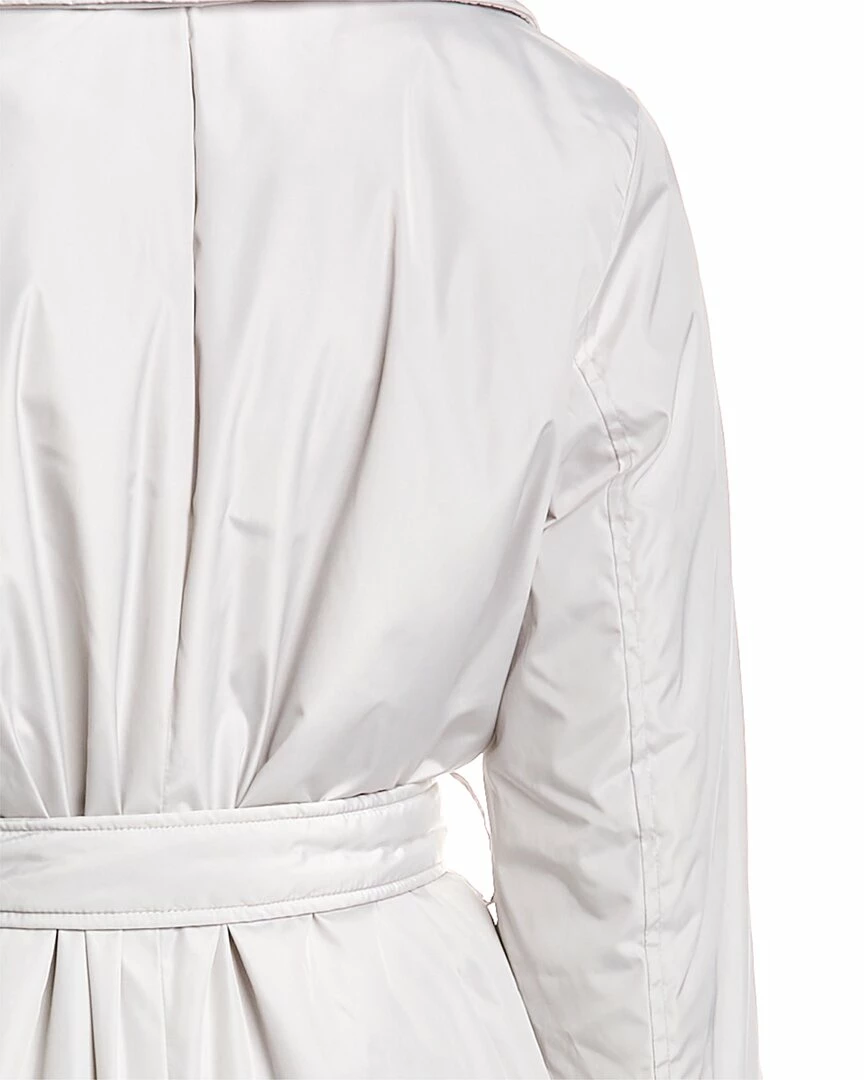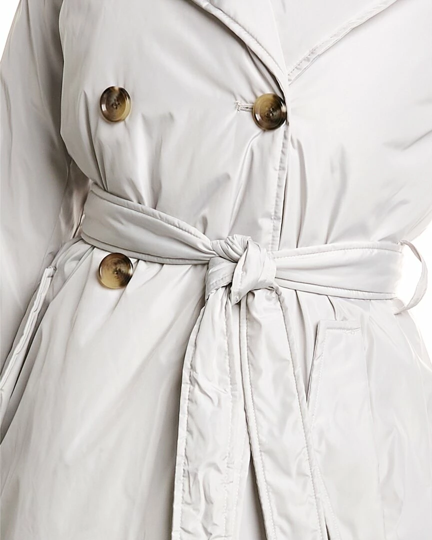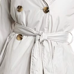 - Padded Trench Coat In Light Sand With Padded Design, Notched Lapel, Two Front Flap Pockets, Self-Tie Belt At Waist And Center Vent At Back Hem