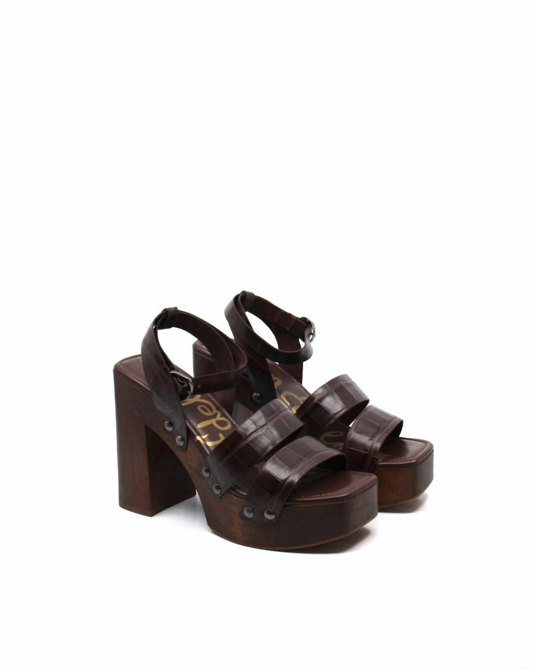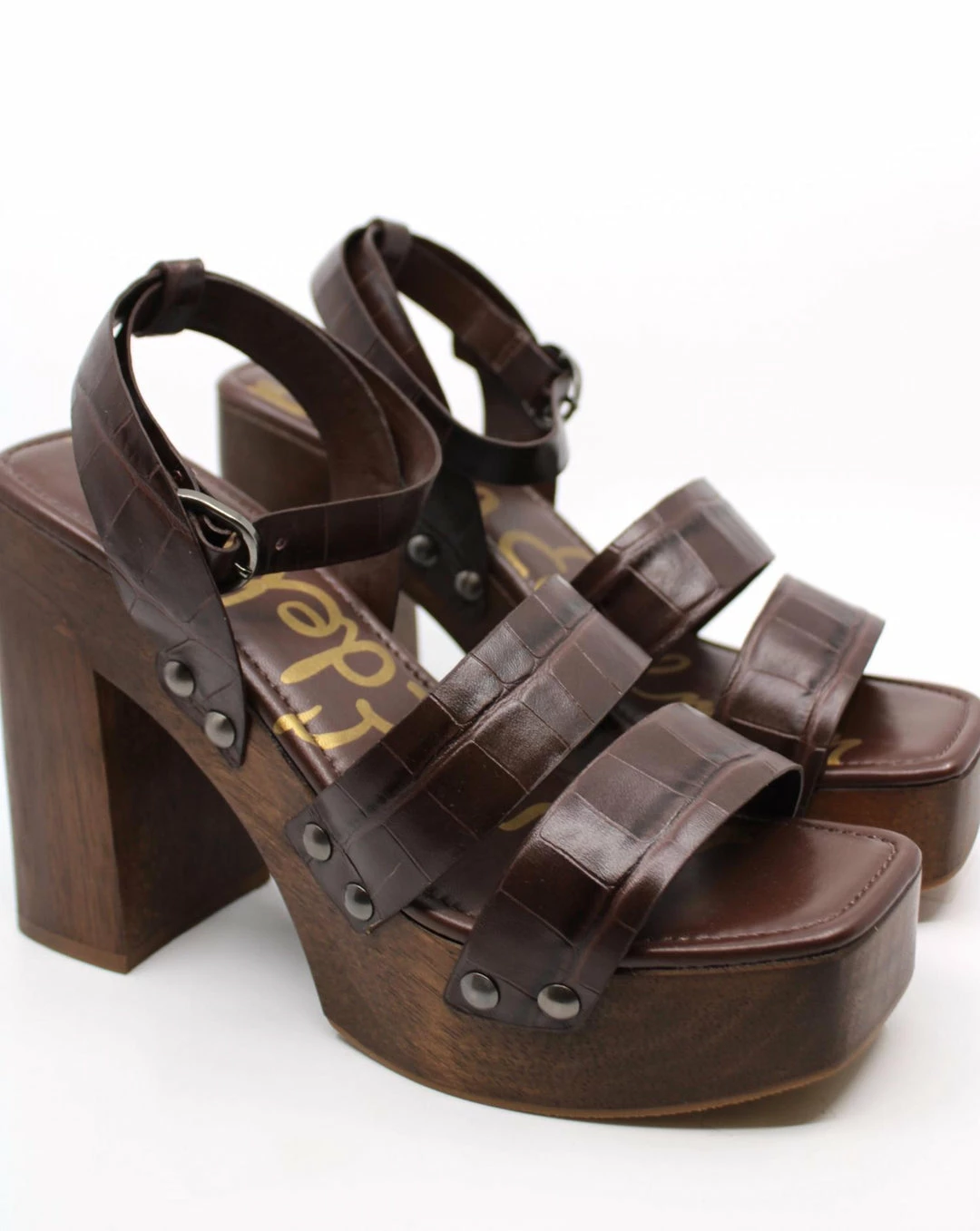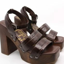 Features a wooden clog platform and stud detailing, it’s both elevated and chic. Closure – BuckleToe – SquareUpper material – LeatherHeel Height – 4.7″