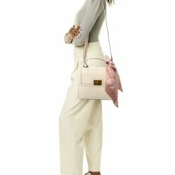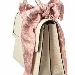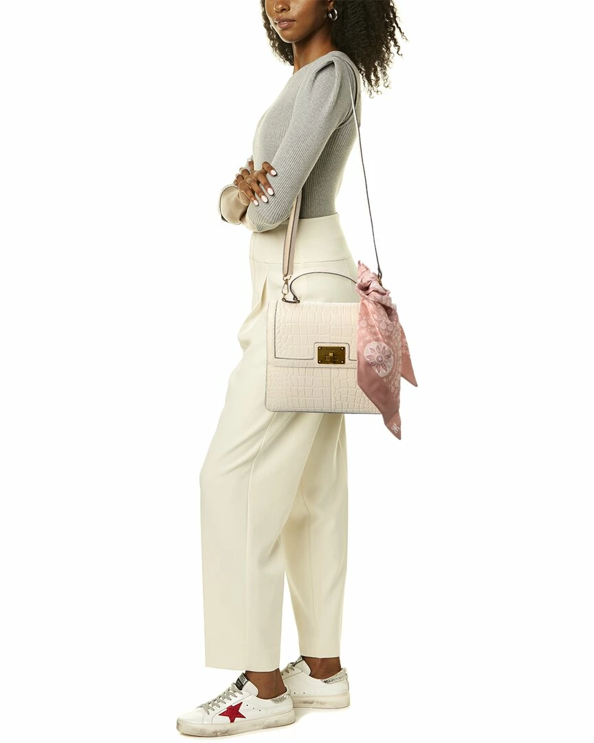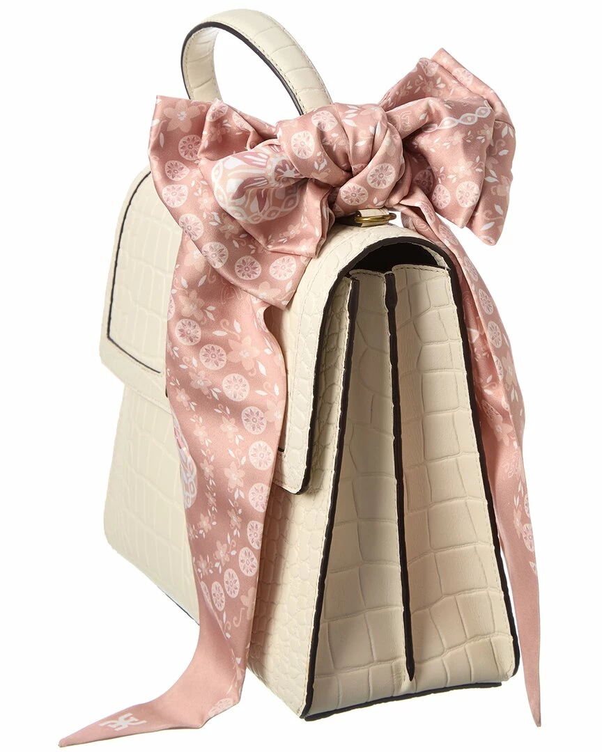 - Sophia Croc-Embossed Leather Satchel In Ivory Croc-Embossed Leather And Gold-Tone Hardware With Zippered Pocket And Printed Scarf Accent