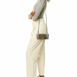 - Sophia Snake-Embossed Leather Clutch Crossbody In Wheat Snake-Embossed Leather And Gold-Tone Hardware With Logo Accent
